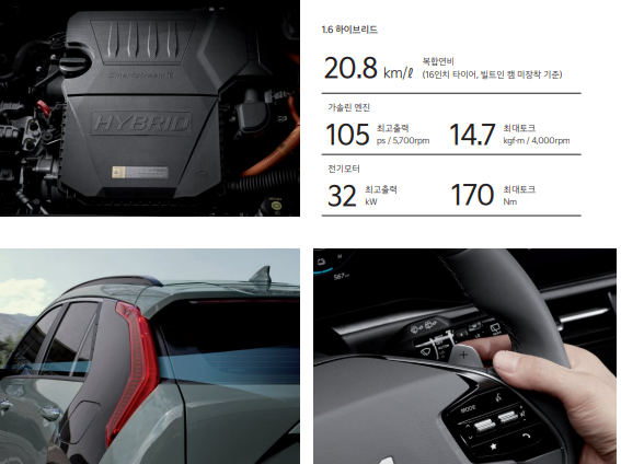 기본형임에도 실내외 디자인과 안전 사양이 탄탄해, 최소 비용으로 니로 하이브리드의 장점을 누리고 싶은 소비자에게 적합합니다.