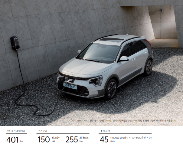 니로 EV는 전기차 초보자에게도 안정감 있는 주행거리(401km)를 제공하며, 히트펌프 및 배터리 히팅 시스템 덕분에 겨울철 주행거리 저하도 최소화됩니다.