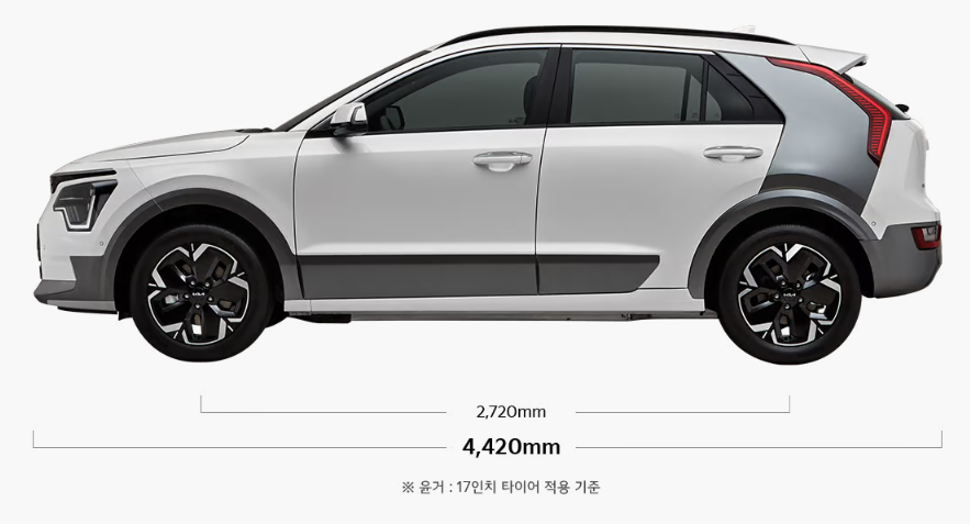 기본 17인치 휠은 승차감과 효율성의 균형을 맞춘 설정이며, 스타일 패키지를 통해 더 스포티한 외관을 연출할 수도 있습니다.