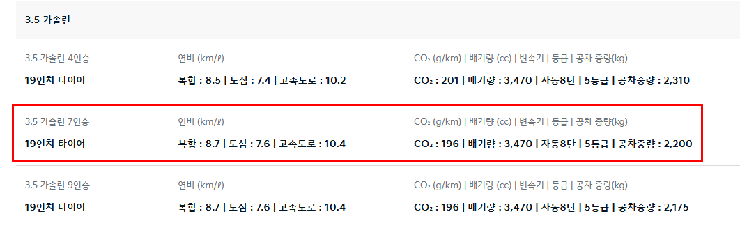 - 변속기: 3.5 가솔린 8단 자동 / 하이브리드 6단 자동
