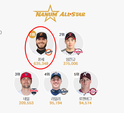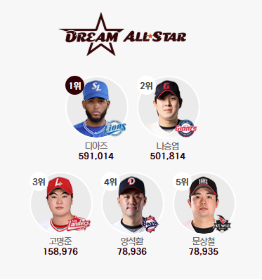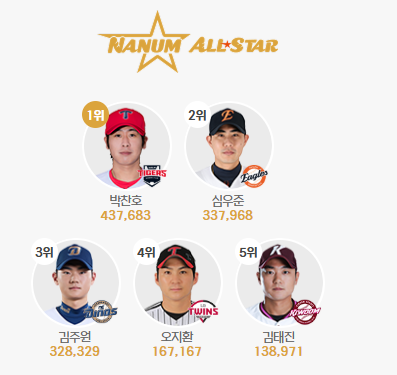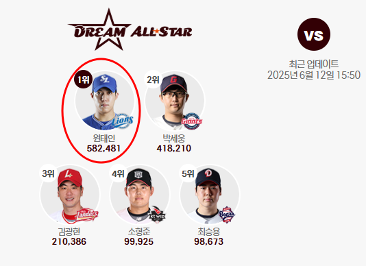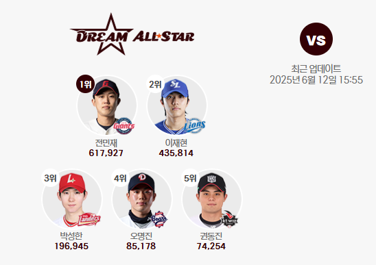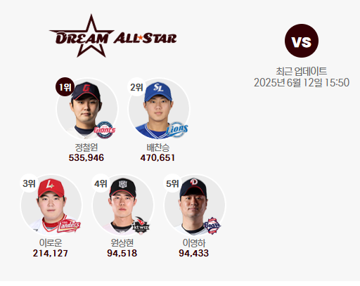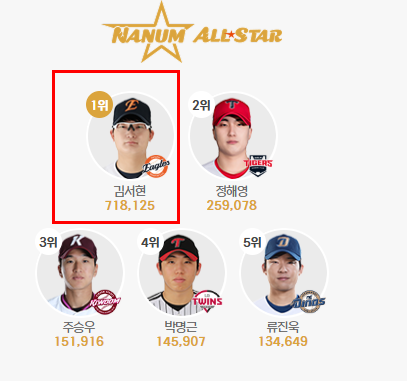 2025 프로야구 올스타전 투표 결과 실시간 1위